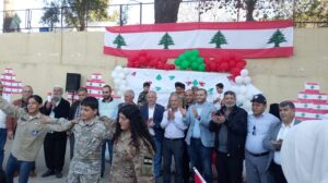 فكانت بعد النشيد الوطني كلمة لرئيس البلدية المهندس قمر السحمراني الذي عبر عن سعادته بإقامة هذا النشاط المميز وتهنئة اللبنانيين بهذا العيد الذي تمنى أن يكون الاستقلال ناجزا العام القادم وأعلن عن دعم البلدية الكامل للمدرسة الرسمية ولفوج الكشاف وتبرع بمخصصاته الشهرية كرئيس بلدية لصالح صندوق المدرسة ووجه التحية للجيش اللبناني البطل والقوى الأمنية التي تسهر على أمننا وتحمي وطننا.