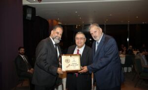 ثم تحدث عن إنجازات النقيب السابق د. احمد عطوي، الذي قاد النقابة في أصعب الظروف وكان مثالا يحتذى به في الوفاء والعطاء، ومنحه باسم المجلس التنفيذي درع “وفاء وعطاء” عربون محبة وتقدير.