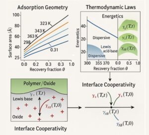 تؤكد هذه الدراسة كذلك صحة النموذج الترموديناميكي الخماسي الذي طوّره البروفسور تيسير حمية لوصف التفاعلات الحمضية-القاعدية على السطوح، وتُظهر أن هذه التفاعلات مرتبطة ارتباطاً عميقاً بمكونات الطاقة السطحية للمادة.