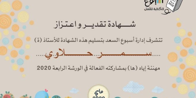 بوابة التربية: حازت المربية سمر مهدي حلاوي، استاذة لغة انكليزية في الجامعة اللبنانية، المرتبة الثانية في أسبوع سعد لكتابة القصص للأطفال ،حيث انها تجاوزت العدد المطلوب للكلمات في أسبوع ، وتناولت في قصصها اهمية العائلة وتعزيز الثقة في الأطفال من خلال التشجيع وسلطت الضوء على دور الأم . بدأت الاستاذة في …
