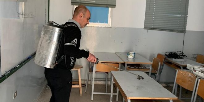 بوابة التربية: انطلاقاً من شعوره بالمسؤولية الملقاة على عاتقه، قام النقابي الساهر على صحة أبنائه، مدير ثانوية كفرا الرسمية فؤاد إبراهيم، وبعد إنتهاء الدوام الرسمي، بتعقيم الثانوية من خلال رش مواد التنظيف، والمعقمات، داخل الصفوف، تحسباً لالتقاط تلامذة الثانوية، أي عدوى من فيروس كورونا، أو غيره. الخطوة التي قام بها …