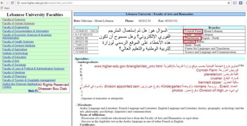 أعلن المكتب الاعلامي لوزارة التربية والتعليم العالي، في بيان، أن الوزير مروان حمادة “أوقف العمل فورا بالقسم الإنكليزي من الموقع الإلكتروني العائد للوزارة بكل فروعها ومديرياتها، بعدما تبين له أن هذا الجانب من الموقع المعتمد منذ 8 سنوات يستخدم طريقة Google translate في الترجمة، وهو يتضمن في ترجمته الحرفية غير …