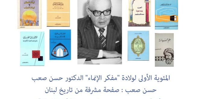 بوابة التربية- خاص: بمناسبة المئوية الأولى لولادة مفكر الإنماء الدكتور حسن صعب كتب المنسق الإعلامي لمكتبة ومؤسسة حسن صعب للدراسات والأبحاث، محمد ع.درويش وقال: هذا العام هو الذكرى المئوية الأولى لولادة “مفكر الإنماء”حسن صعب. حسن صعب ولد في مدينة بيروت بتاريخ 1922/10/15 وحيدا من زواج أبيه وأمه القصير العمر. فوالده …