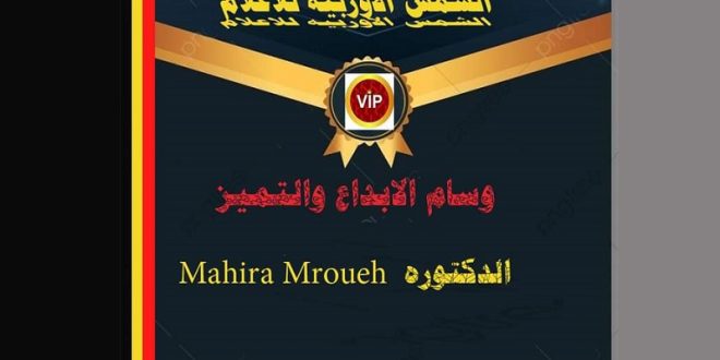 بوابة التربوية: نالت مديرة دار المعلمين والمعلمات للتربية الرياضية- بيروت، الدكتورة ماهرة مروة، وسام الابداع والتميز من منظمة وقناة الشمس الاوروبية للاعلام مقرها بلجيكا، تقديرا للتعاون الاعلامي والتربوي والثقافي، والعمل من اجل الانسان والسلام، والكتابة عن الحضارات القديمة (الذي صدر بجزئين العام 2010). بدورها شكرت د.مروة المنظمة وقناة الشمس الأوروبية …